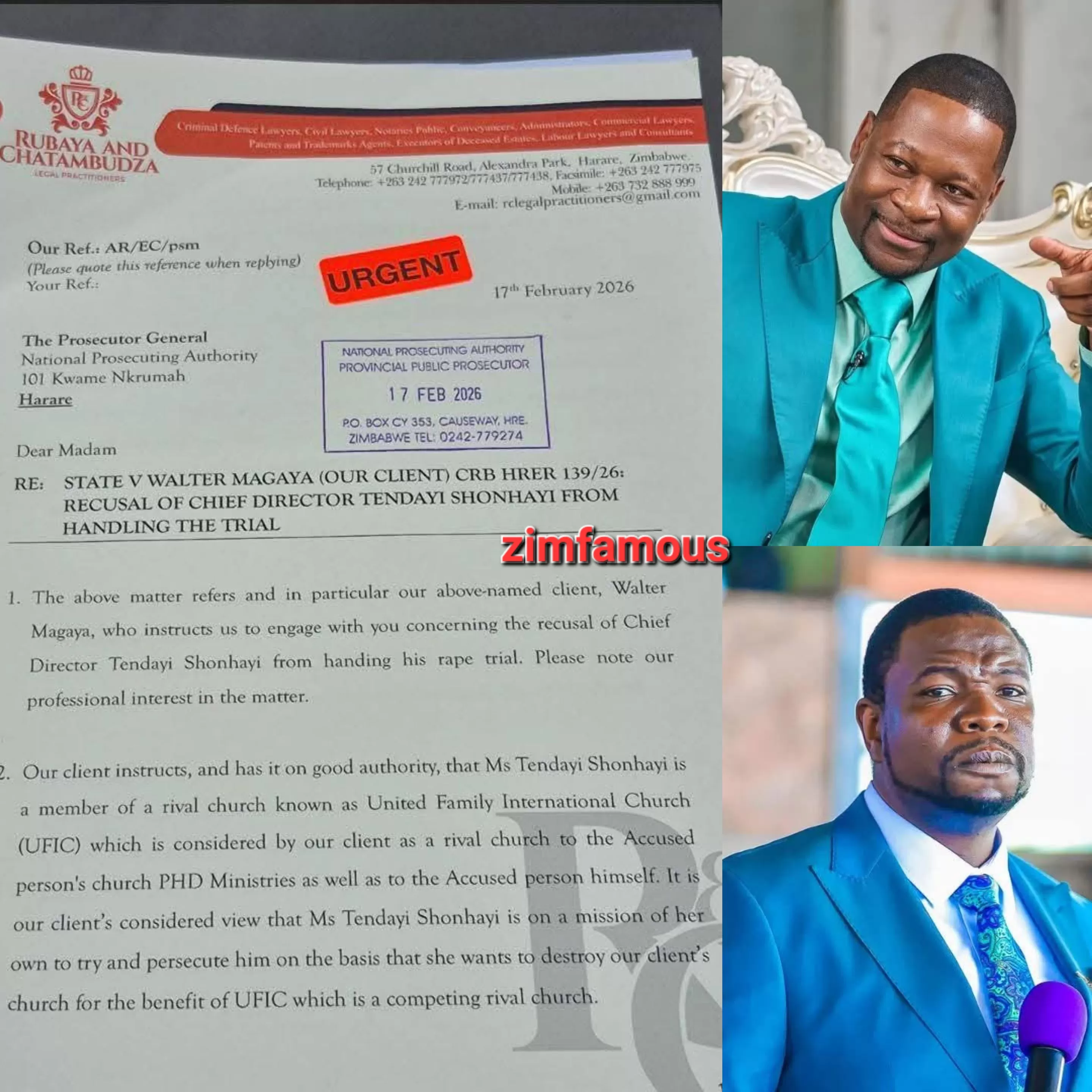 He requested that Chief Director Tendayi Shonhayi be removed from handling the case, arguing that she is a member of Prophet Makandiwa’s church, which he views as a rival.