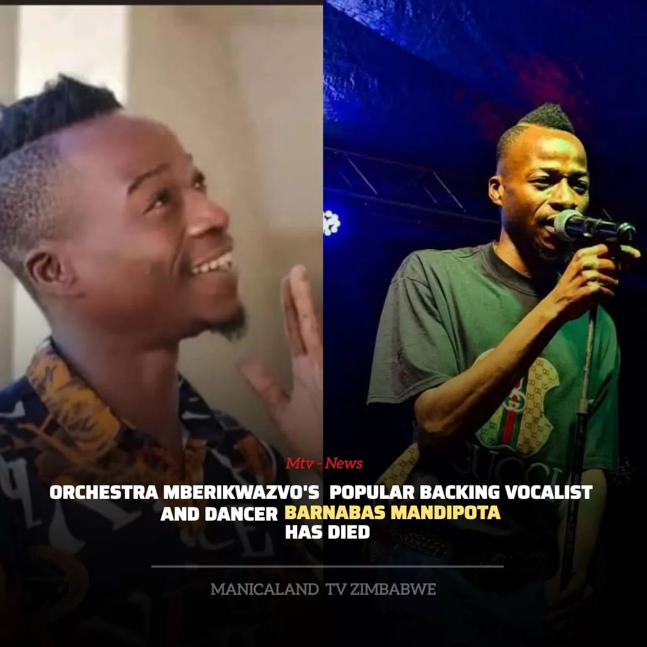 Orchestra Mberikwazvo's popular backing vocalist and dancer Barnabas Mandipota has died.